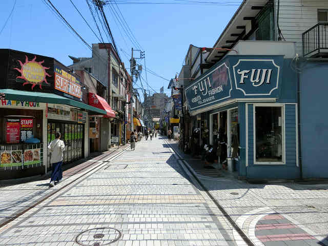 日本とアメリカの雰囲気が融合し、バラエティ豊富な業種が軒を連ねる特色ある商店街です。