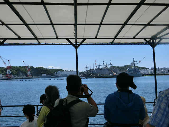 軍艦に乗っているアメリカ人船員と手を振りあえる体験もほのぼのして良い。日米関係は安泰ですね。