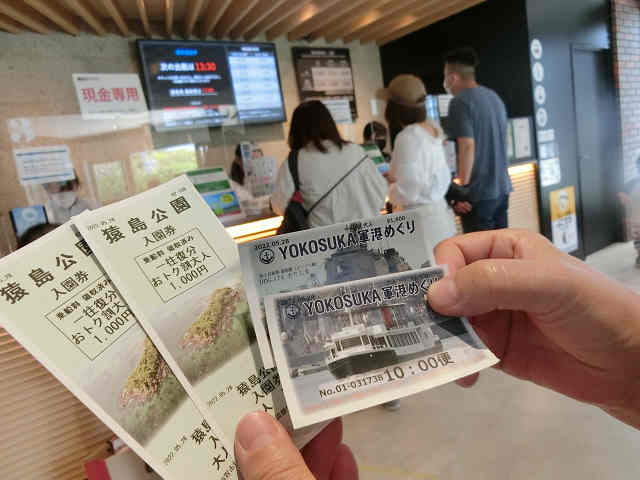 軍港巡り半券を見せると猿島行のチケットが割引されますよ。