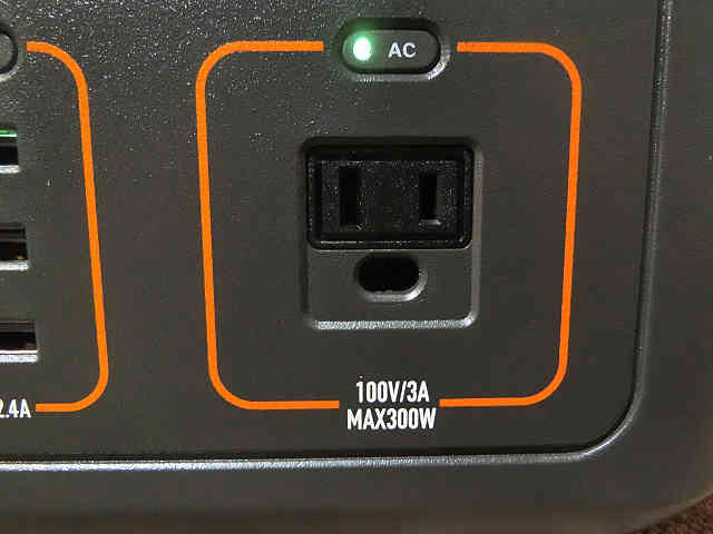 家庭用コンセントを差し込むと300W以下の家電などが使用可能となります。